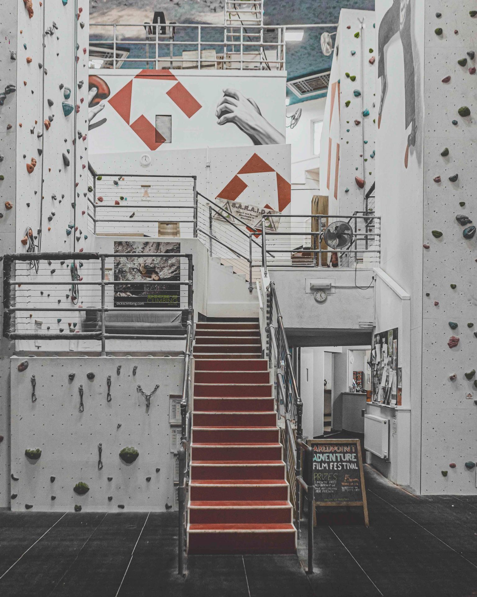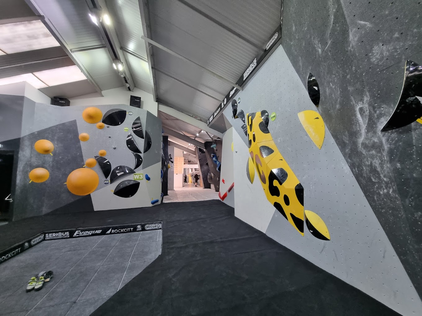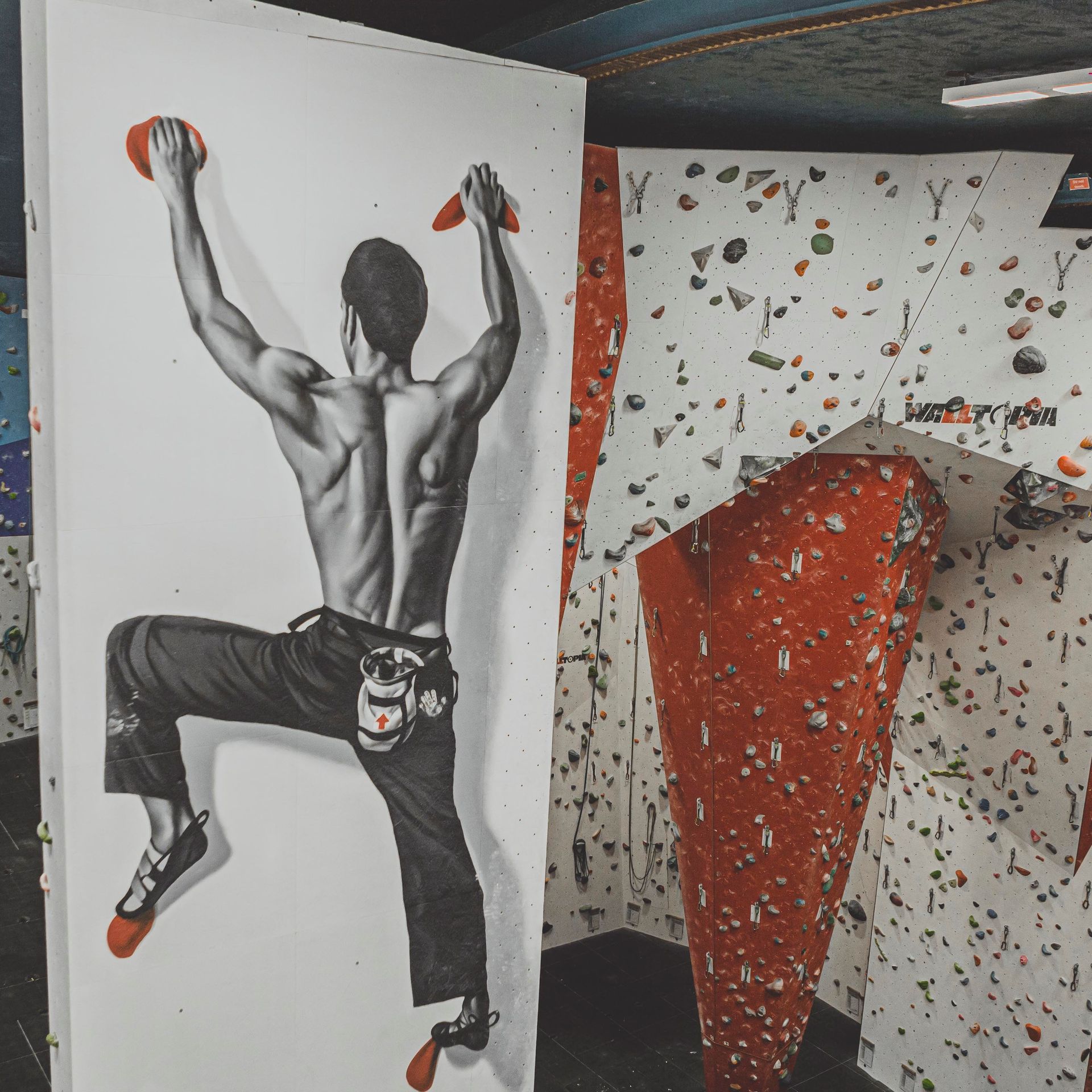 Innovative climbing walls and vibrant community atmosphere.